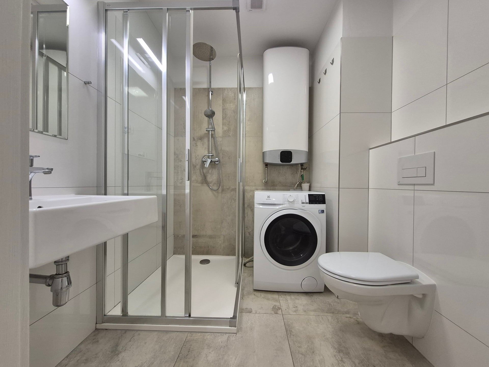 V bytě je vytápění řešeno elektrickým podlahovým topením. Každá místnost má vlastní termostat, díky čemuž si můžete teplotu snadno regulovat podle svých potřeb. Ohřev vody je zajištěn elektrickým bojlerem.