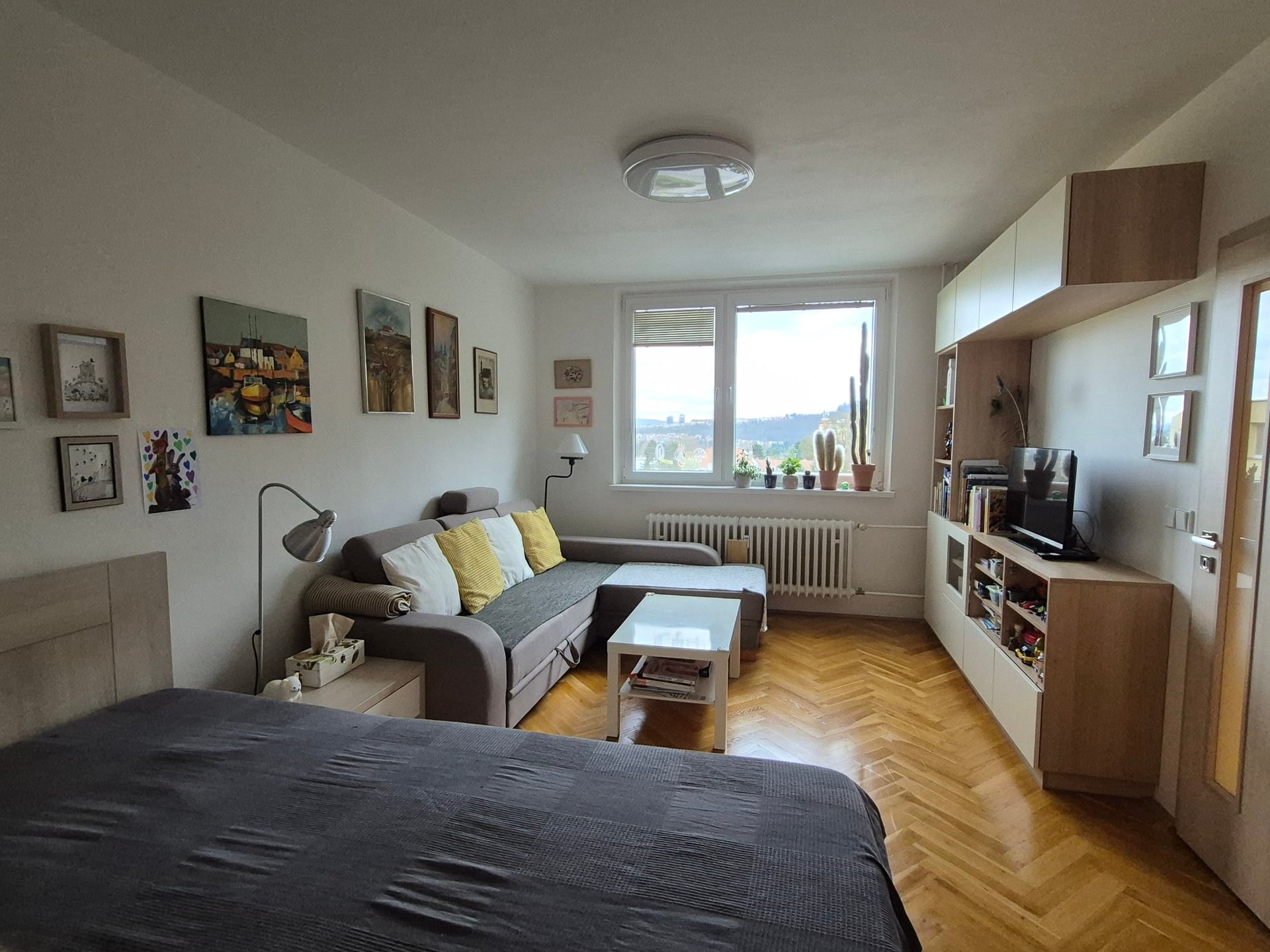 Dispozice bytu je velmi příjemná, neprůchozí pokoje – větší pokoj a kuchyně s lodžií jsou orientovány na východ, menší pokoj (ložnice) na sever. Byt je situován v klidné lokalitě, jen pár metrů od obory Holedná. Z bytu je krásný výhled do zeleně i na Brno.